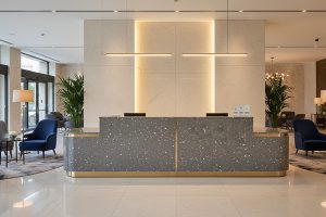 هتل: برای طراحی لابی ها و میزهای پذیرش، این سنگ می تواند حس مدرن و لوکسی را به فضا ببخشد.