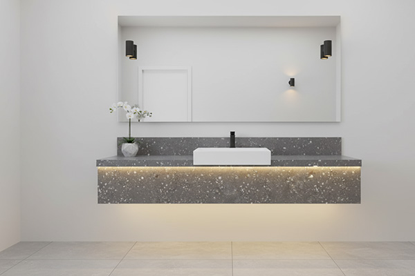 استفاده از نورپردازی مخفی: برای برجسته کردن دانه های سفید و ایجاد جلوهای زیبا، استفاده از نورپردازی مخفی میتواند تأثیر زیادی داشته باشد. نورهای زیر سطحی یا در کنار دیوارهای اطراف سنگ، دانهها را برجسته کرده و زیبایی سنگ را بیشتر به نمایش میگذارند. این نوع نورپردازی برای فضاهایی مانند لابی هتلها یا پیشخوان فروشگاهها که نیاز به طراحی مدرن و لوکس دارند، بسیار مناسب است.