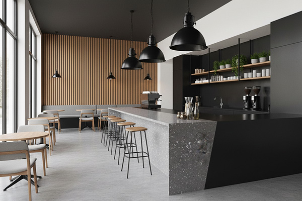 کافه ها و کافیشاپ ها: استفاده از این سنگ برای میزهای پیشخوان و کانترها می تواند فضایی دلپذیر و جذاب برای مشتریان ایجاد کند.