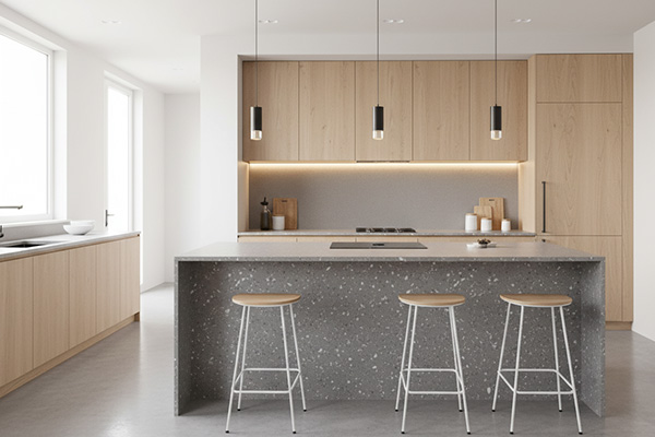 آشپزخانه های مدرن: ترکیب سنگ کورین اورانوس GR-206 با رنگهای خنثی مانند سفید یا خاکی می تواند آشپزخانه ای ساده و در عین حال شیک بسازد.