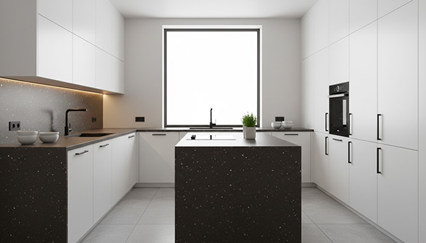در سبک مینیمال گرم، میتوان GR-300 را با چوب طبیعی، متریال مات و خطوط ساده ترکیب کرد. حذف جزئیات اضافی و استفاده از سطوح یکپارچه باعث می شود دانه بندی سنگ بهتر دیده شود و فضا حس آرامش و انسجام پیدا کند. این ایده برای آشپزخانه های مدرن، دفاتر مدیریتی و فضاهای مسکونی لوکس بسیار مناسب است.